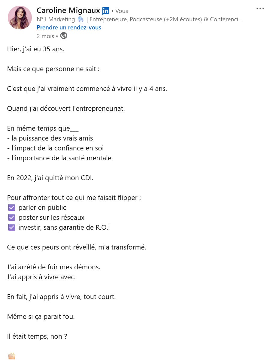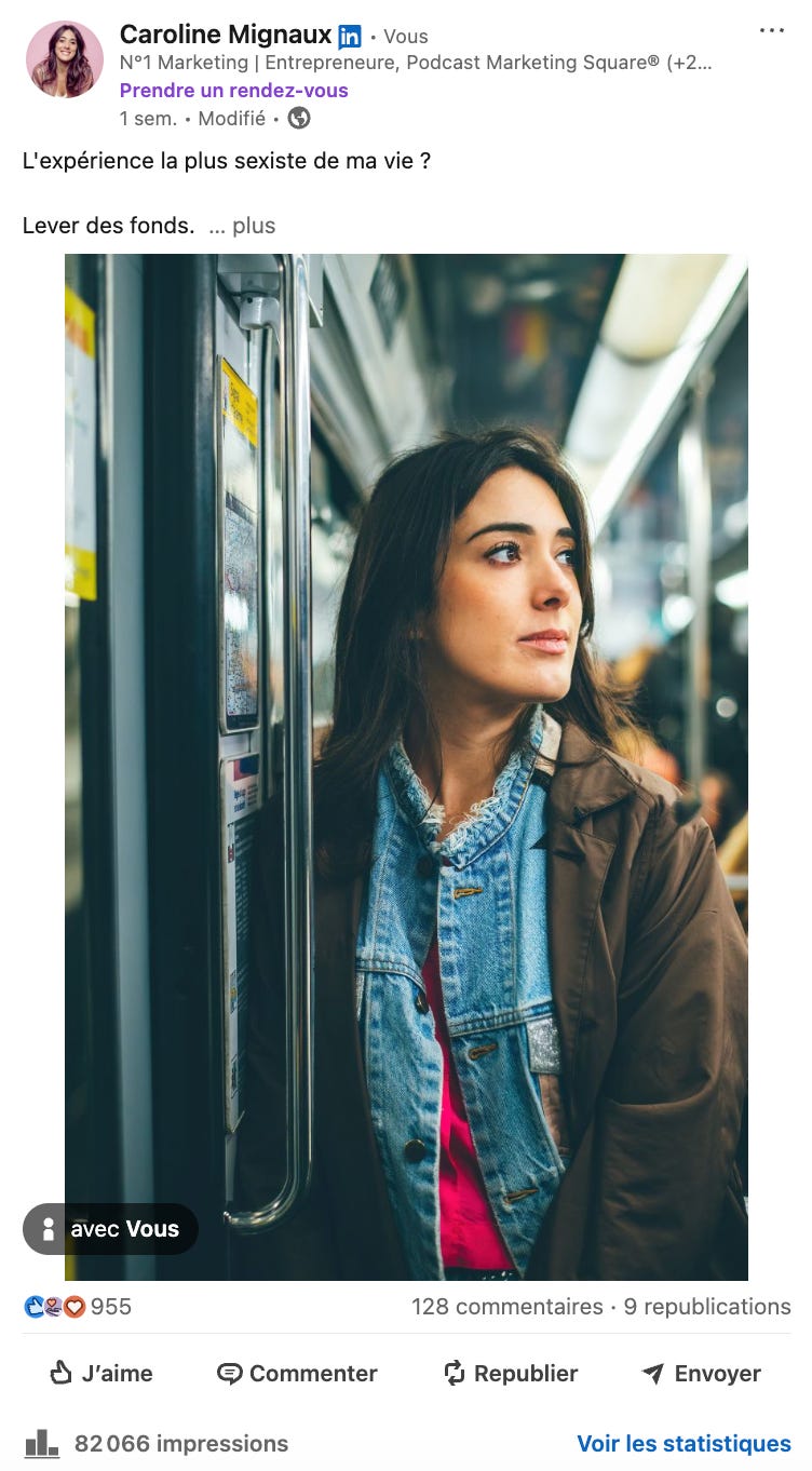 Dans ce post récent, j’appuie sur les contrastes et le curiosity gap (je joue avec l’image et les préjugés).